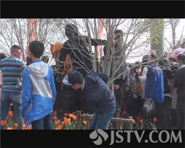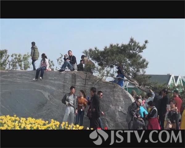 进入到景区之后,记者在广场上看到,大批的游客滞留在广场的舞台前,等待著名主持人孟非的出现,景区内到处都是游客在观赏盛开的郁金香,不时的用手机拍下精美的瞬间,一些摄影爱好者也从全国各地赶过来,争相竞拍这美好的景象。然而,记者在采访过程中也发现,由于景区内游客爆棚,景区管理部门的人手紧缺,管理不到位,加上一些游客素质低下,随意踩踏鲜花、随意乱抛垃圾的现象时有发生。在广场西侧的河边,随处可见乱抛的矿泉水塑料瓶和面巾纸,在广场对面的一只花盆里,堆满了垃圾,而盆里的鲜花则被压断花茎。在写有“荷兰花海”字样的石头上,不少小孩,甚至还有一些成年人为了观看演出,不顾安全,爬到石头上也没有管理人员出来制止。在演出舞台的北侧,一些游客为了观看演出,带着小孩直接站在花丛中,丝毫没有感觉到脚下的郁金香花已被踩断。在景区的西北角,一对新人穿着婚纱,站在人行道上,不停地摆着各种造型,而摄影师则蹲在花丛中拍摄。面对这种不文明的赏花行为,多数前来赏花的市民认为应该遭到谴责。