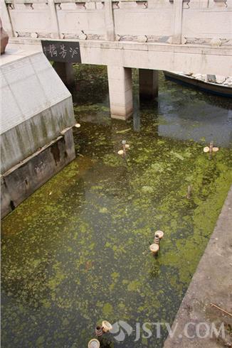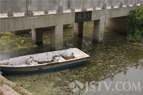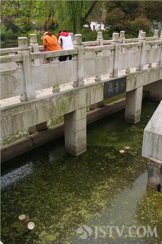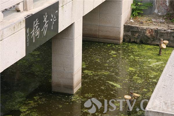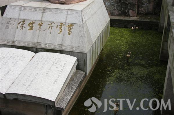在南京清幽典雅、以山光水色取胜的乌龙潭公园内,有一座曹雪芹博物馆,博物馆前的泌芳桥中心矗立着一座高大的曹雪芹菜坐姿雕像,他身着长袍,手持文卷,气宇轩昂,饱含文豪神韵。然而,就这么一座人见人爱的曹大人雕像,如今却长期被污水环抱。今天上午,笔者在看到:沁芳桥四周的水面充斥着漂落的树叶和蓝藻,有的已经发黑发臭。在春暖花开、绿水如蓝的春日里,目睹这一切,广大市民和游客实难置信。