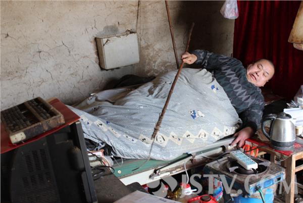 郑先生透露,每天吃喝拉撒睡都是在床上,每天门口邻居会帮着自家买点菜买点米和油,但是做饭和烧水都是靠郑先生在床上完成,所有操作全靠铁夹子和两根带有铁钩的竹竿。