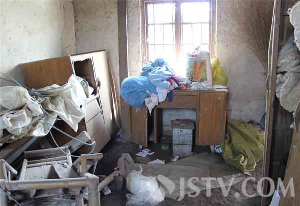 在郑先生家中映入眼帘的是家徒四壁情景,两个侧房内所有的家具都已经陈旧破损不堪,家具和床具上上沾满了厚厚的尘灰,由于郑先生是脊椎穿孔瘫痪了三十多年,如今每天的生活都是在床上进行。