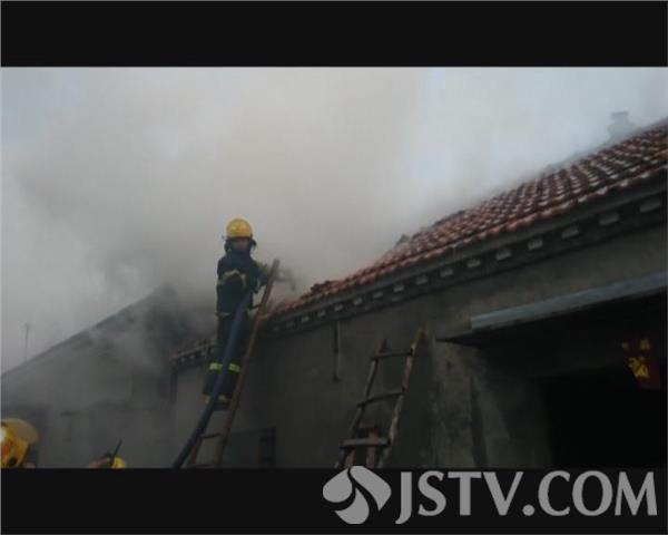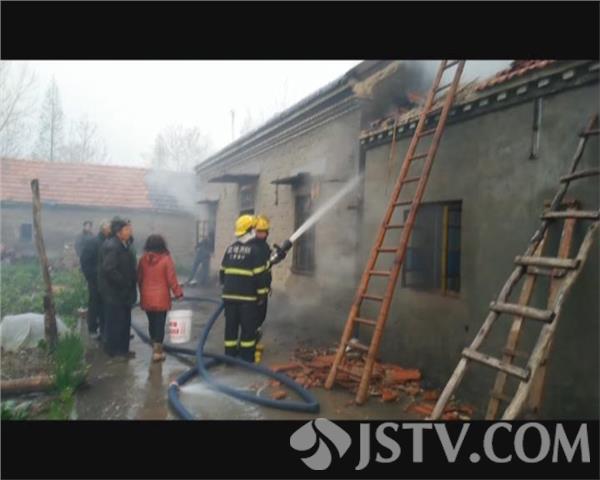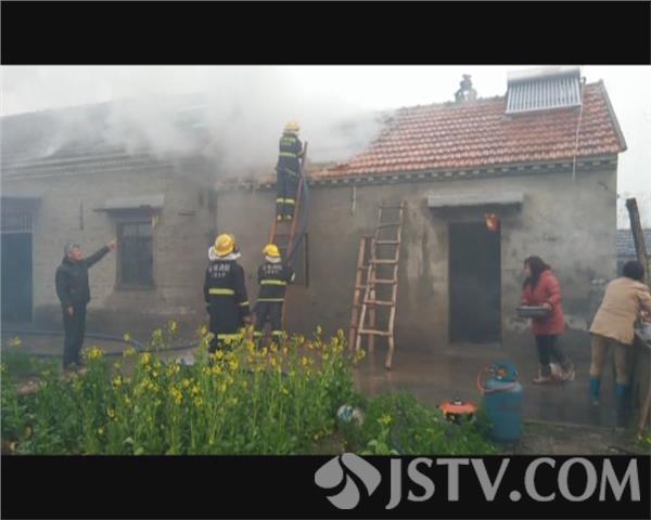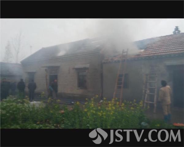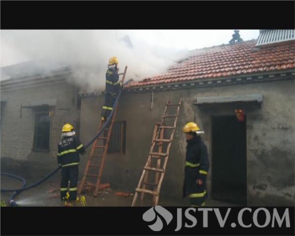 4月14日上午11时,由于受到连日来雨水天气的影响,盐城市阜宁县沟墩镇陈桥村白水堂的一户民房不慎起火,火灾发生时由于从房顶开始起火,现场的百姓赶紧拨打了报警电话。