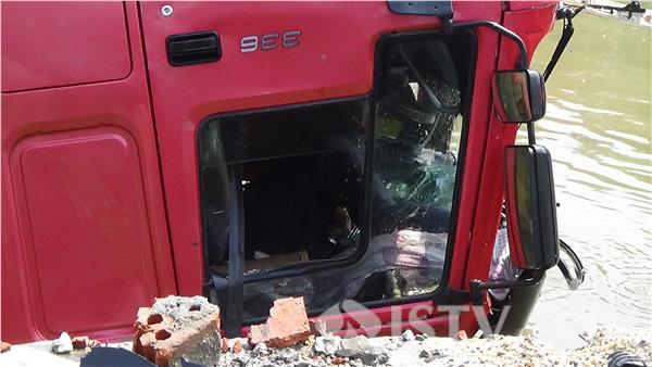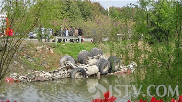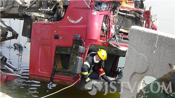 由于车子整个驾驶室都沉入水中,于是经过现场交警协调,调来了两辆吊车,将车头从河内吊出水面,车内驾驶员已经不幸身亡。目前事故的原因正在进一步调查处理之中。