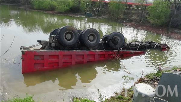 到达现场后,只见一辆大货车侧翻在河内,河水不深,但车身一大半都浸在河内,轮胎朝上露在水面上,整个驾驶室都浸入水中。派出所的民警和交警队的警察同志已经穿着救生衣下水做过了一轮的营救尝试,但并没有成功。