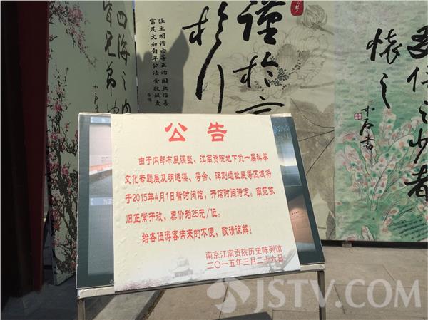 今天,记者来到南京夫子庙景区,江南贡院的牌坊下,已经围上了两米多高的围挡。一旁的公告牌,告诉来此的游客,由于内部布展调整,江南贡院地下负一层科举文化专题展,以及明远楼、号舍、碑刻遗址展等区域与本月1号,暂时闭馆,开馆时间待定。那么,布展调整,到底是什么意思呢?