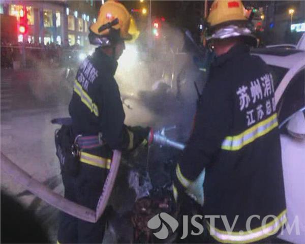 在张家港闹市区,这辆轿车的车头已经处在一片火海,及时赶到的消防人员一边让行人不要靠近,一边赶紧灭火,很快,火被扑灭。轿车车头烧毁严重。车主是一位年轻的女子,她说车子是前不久刚买的,当时她开车正带着几位朋友兜风,当行驶到事发路段时,引擎盖突然冒烟,她赶紧停车让朋友疏散到安全地带,稍后不久大火就迅速蔓延起来,正在执勤的城管队员拿来灭火器灭火,无奈火势太大,她赶紧向消防官兵求助。目前,事故原因正在调查之中。消防救援人员提醒广大车主朋友,气温升高,机动车辆容易自燃,上路前一定要仔细检查,以防意外发生。