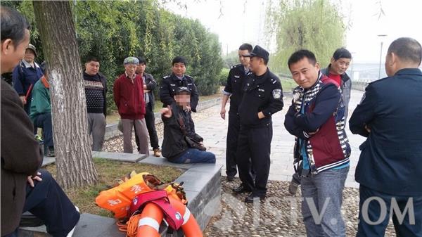 民警到场了解得知,要跳江的男子正被周围市民合力拉上岸边,据第一个发现男子要跳江的郝老汉(郝仁,已年过七旬)称,当时他正在江边钩鱼,突然发现一男子快速翻过江边护栏,意欲跳江,他赶紧跑了上去,紧紧抱住该名男子以阻止其跳江,最后在旁边众人的合力帮助下,男子被成功拉上了岸。