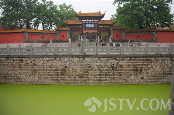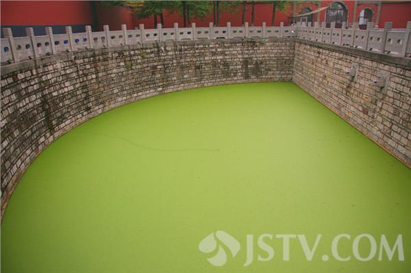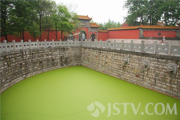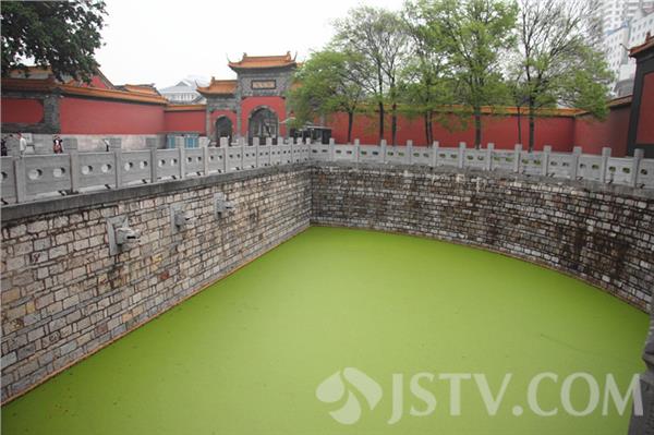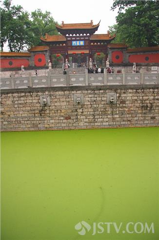 进入朝天宫万仞官墙后,首先映入人们眼帘的是一半月形的泮池。自古以来,泮池水都清如明镜。然而,笔者今天上午前往这里看到的确是绿荫荫的一片,泮池的表面履盖着厚厚的一层浮萍,仿佛成了'足球场'。 目睹此情此景,一些“老南京”多有抱怨。他们说:朝天宫是江南地区现存古代建筑群中规模最大、建筑等级最高、保存最完整的明、清古建筑群。为了保护好这一全国文物保护单位,各级政府投入了不少资金对景区进行改造出新。如今大门的泮池竟变成这样,令人不可思议。希望管理方能尽快想办法,对泮池进行清理,还这里池水清如许的景色。