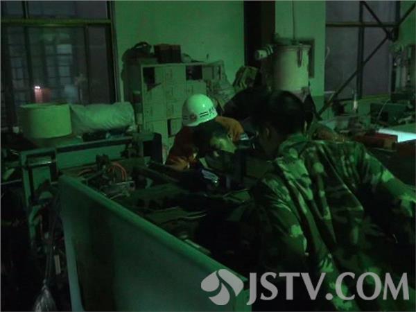 4月19日17时45分,位于江苏省南通市通州区金沙镇金北初中往北500米一作坊内,一名老汉在修理机器的时候不慎将手卡在了机器当中,救援人员接到电话后立即赶往现场处置。