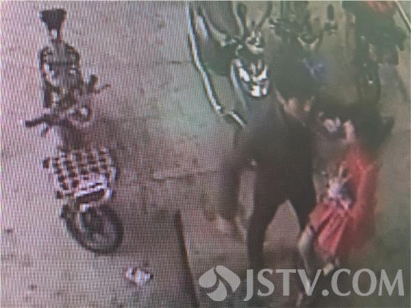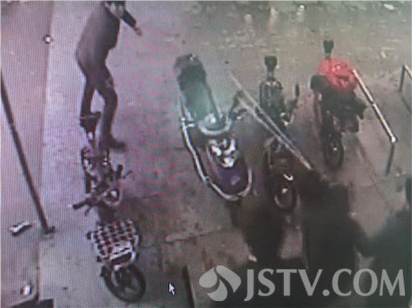 监控录像显示,事发当时,一名穿黑色衣服的男子正拿着刀挟持一名穿红色衣服的女子,并拼命往屋外拽,女子不断挣扎未能逃脱。旁边几位市民过来劝说,男子不听,市民就用拖把打掉了他手上的刀,并顺势将男子控制。随后,市民拨打了110。