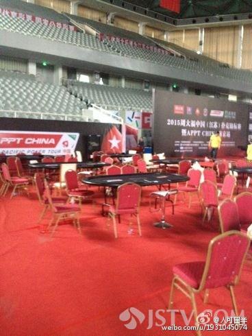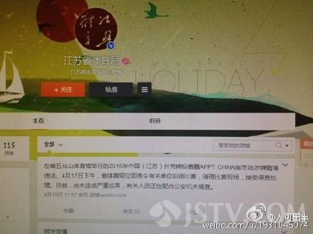 苏体育局官方微博19日上午11点发布称:在省五台山体育馆举行的2015年中国(江苏)扑克锦标赛南京站涉嫌赌博违法。4月17日下午,省体育局立即责令有关单位叫停比赛,清理比赛现场,接受调查处理。今天上午,记者来到江苏省社会体育管理中心。工作人员表示,社会体育管理中心当初主办的是其中的掼蛋比赛,公益性质的,并不收取报名费。对于其中的德州扑克比赛涉赌一事他们并不知情,目前有关人员正在配合公安机关调查。记者了解到,按照赛事要求,每名参加德州扑克比赛的人员都要交纳3000元报名费,其中10%也就是300元要作为管理费,其余2700元可以入场兑换筹码进行比赛。而就在开赛的前一天,赛事组委会负责人杨某在接受采访时也坦言,国内目前也存在将这一项目作为赌博工具的现象。