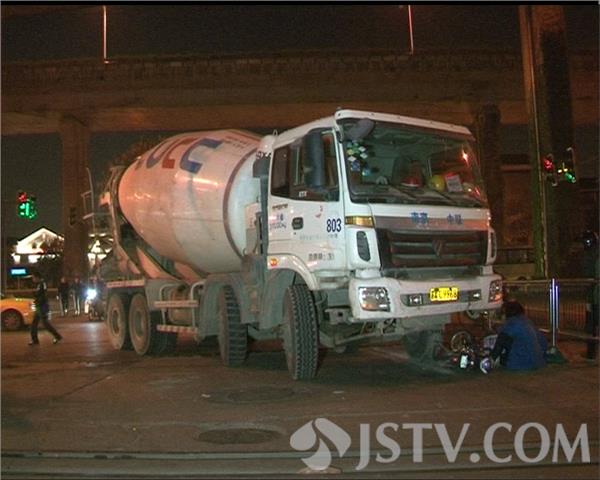 昨晚7点半,南京秦淮区土城头铁道口,一辆混凝土搅拌车在路口转弯时,将同方向行驶的一辆电动车刮倒,骑车女子险些被卷进车底丧命!