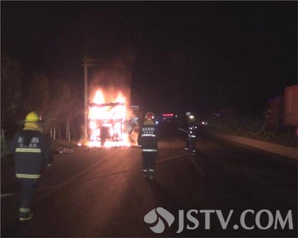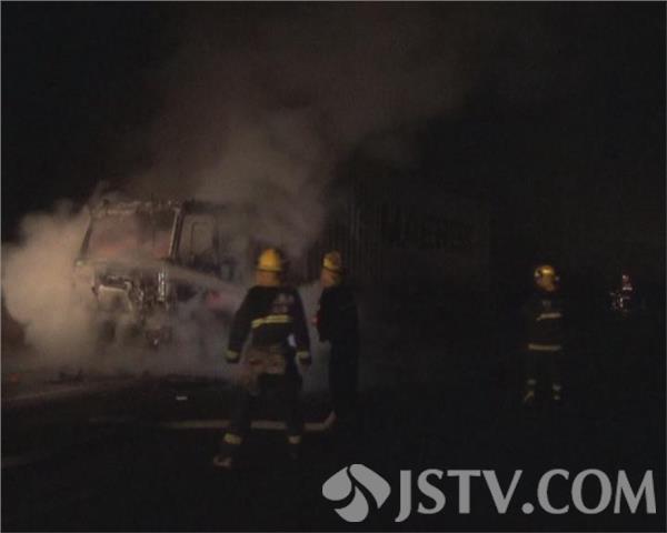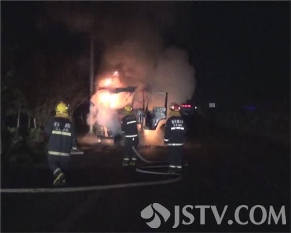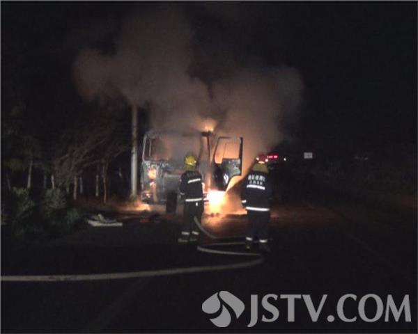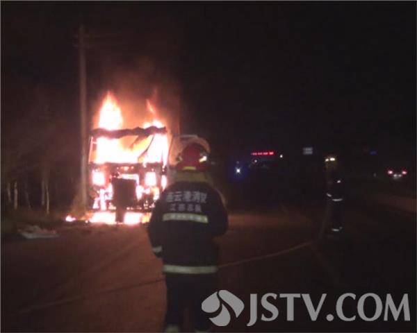 4月20日晚上8时许,位于新204国道连云港市赣榆区龙王河北边,一辆装载橡胶的货车突然起火燃烧,赣榆消防中队官兵闻讯后,立即赶往现场扑救火灾。经过消防官兵约20分钟的紧张扑救,火灾被扑灭,成功保住了车厢内的物品,火灾未造成人员伤亡。