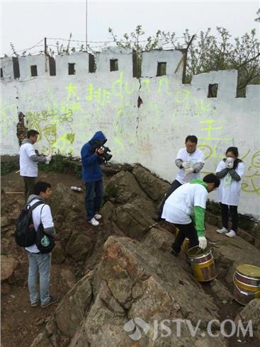 2015年1月记者曾来到紫金山顶峰,看到涂鸦墙上的留言内容确实五花八门,一位叫张师师的,从去年至今,一共登了四次紫金山最高峰,都无一例外的在这记录下来。难道这'涂鸦墙'就没人管?随后记者找到了这块区域的主管部门,中山陵森林管理处紫金山管理所。管理所当即组织人员,把整面涂鸦墙都刷白了。
