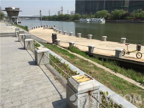 有市民反映,在南京六合的滁河河道两旁的护道上的景观等有大量损坏,电线外露,存在一定的安全隐患。