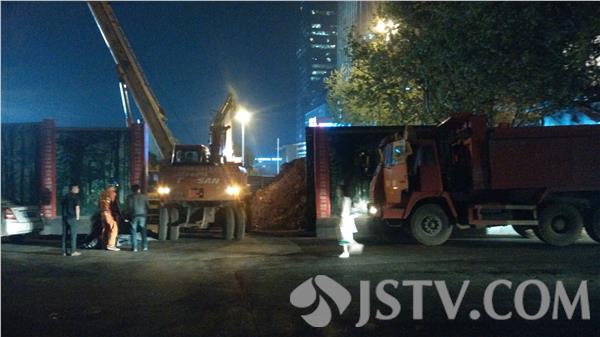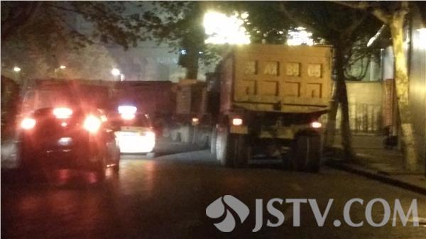今天晚上7点半钟,记者路过南京鼓楼广场,突然,耳边响起了“轰隆隆”的声音,说时慢,那时快,记者回头一看,一辆渣土车从记者身边飞逝而过。记者心惊肉跳,再朝南京地铁4号线工地看去,这些渣土车是来运输渣土的。只见,工地上,堆着一大堆泥土,一辆装载机往渣土车上撞运泥土。记者不禁要问,南京市规定闹市区渣土车应在晚上10点以后才能允许运输,这才7点多钟,渣土车就迫不及待地在街头狂奔了。显然,管理部门是疏于管理了。前几天,在南京,渣土车又闯祸,撞死了一个人。令人心有余悸。记者提醒市民,市区行走,一定要多加小心啊,尽量离渣土车远一些,再远一些!