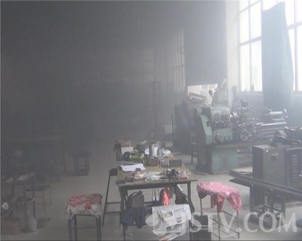 消防队员用撬棒将车间角落相邻的窗户玻璃敲碎,加快排烟速度。据初步了解,这家厂主要是线切割的,当时有一人在车间作业。隔壁厂的工友发现他家厂房窗户冒出浓烟,并有火光出现,立即告诉这名工人自救报警。起火烧毁的是两台切割机床,墙壁被烤黑。目前,具体起火原因及损失有待进一步调查。