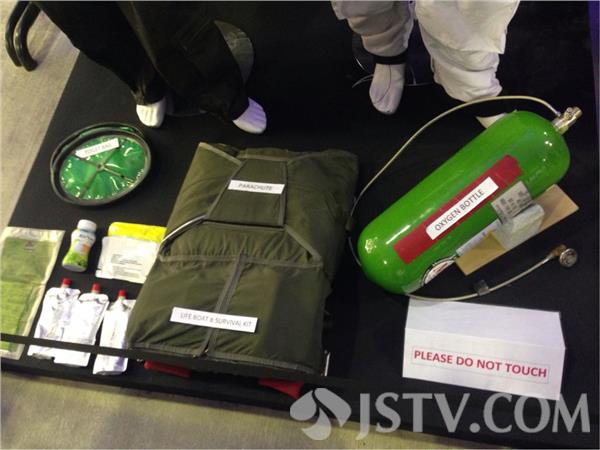 装备区从飞行员所穿的保温飞行服到佩戴的眼镜,从吃的特殊餐食、喝的饮料,到降落伞、氧气罐,还有简易厕所,都一应俱全。太阳能飞机的材料区更是奇妙无穷,让人应接不暇。这个薄薄的东西,就是太阳能电池板,覆盖在飞机上,为飞行提供能源,还有机身使用的碳纤维材料,很轻但很坚固。
