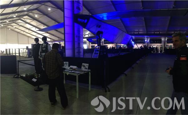 南京禄口国际机场的52号停机坪,这个3200平方米的大帐篷,就是太阳能飞机阳光动力2号在南京临时的家。其中一部分区域可以举行新闻发布会,是一个信息发布和公众交流的平台。最大的区域,就是大家最想看到的太阳能飞机,绕着它走一圈,你可以看清它的所有细节。在旁边还有一个特别的展区,这里有飞行员所穿的装备,以及制造飞机的材料,可以说是一个让大家更了解瑞士创新的平台。