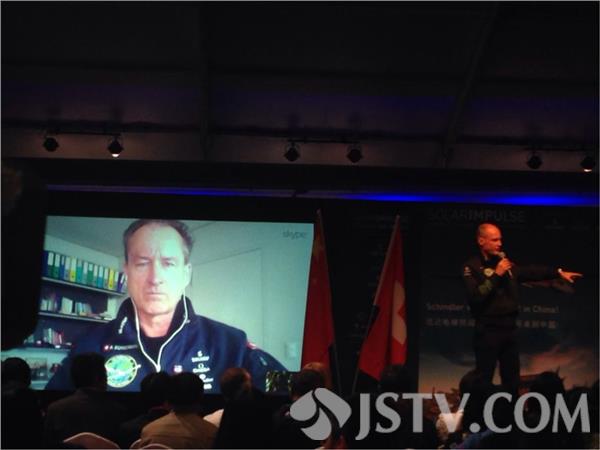 “阳光动力2号”团队,今天下午在太阳能飞机旁,举行了首场新闻发布会。该活动的发起人、同时也是飞行员的贝特朗·皮卡尔向大家介绍了太阳能飞机的传奇故事,由于身体原因暂回瑞士修养的另一位飞行员安德烈·波许博格,也通过视频亮相,阐述了“阳光动力2号”活动的意义。太阳能飞机“阳光动力2号”飞行员贝特朗·皮卡尔说:“我们想用行动告诉大家创新的无限可能,人类已经使用燃油作为能源很多很多年了,是时候改变能源的开发和使用了。”