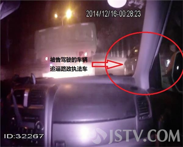 画面中显示,执法人员驾车追赶一辆涉嫌超载的大货车,在执法车右前方一辆黑色轿车试图将执法车逼停,阻止执法车对超载货车的检查。执法人员一边打电话请求增援,一边对刘某所驾驶的黑色轿车进行喊话:“苏CV****小车,你不要这样子,出现安全事故都是你的责任,我给你讲,你不要这样子。苏CV****,你注意安全,出现事故都是你的事,驾驶员你想清后果......”
