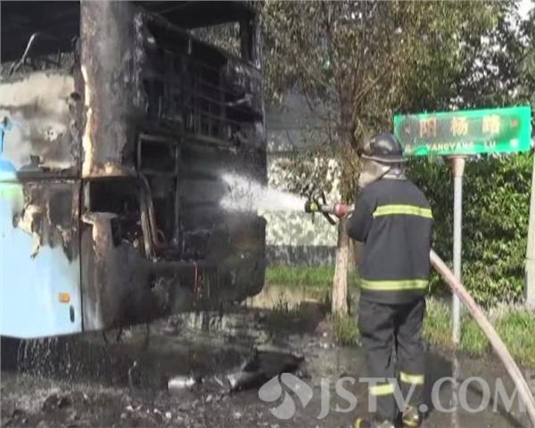 大巴车驾驶员:我这里开过来,开过来等红绿灯,然后反光镜看到后面冒烟了,然后我拐过来,拐过来停了打开那个么里面已经着了,里面着了么我拿灭火器喷了已经没有了。肯定是后面哪个地方短路了。