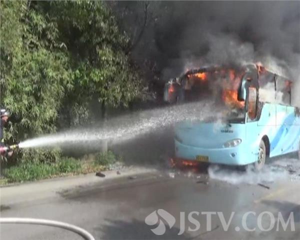 4月22日下午3点,无锡市惠山区阳山镇杨阳路上一辆大巴车突然起火燃烧,现场浓烟滚滚,火势很大,驾驶员在自救无果的情况下,立即拨打了电话报警。