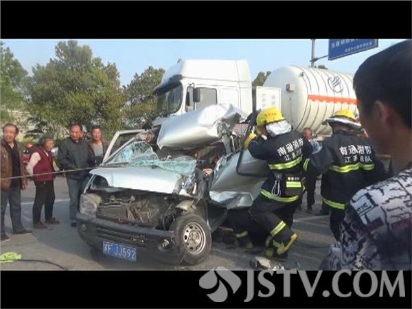 据货车驾驶员介绍说,他的货车是从南通金沙往这边拉货的,车上共有两个人,当时,他的货车和后面的面包车都是由南向北行驶的,他在前面,面包车在后面,路过一个加油站时,准备转弯进加油站加油的,也打了左转向灯,结果还没转过来,就听到后面“砰”的一声响,下车一看,后面面包车驾驶室里有一名驾驶员被困,于是,赶紧打电话报警了。
