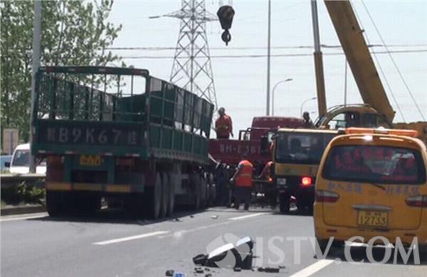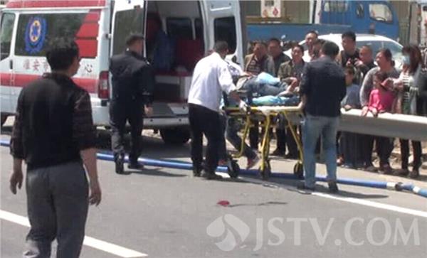 4月23日上午10点左右,G205国道淮安武墩附近路段发生一起交通事故,一辆满载钢材货车为躲避前车紧急刹车,车上的钢材因惯性冲进驾驶室,车内两人被困在变形的驾驶室内动弹不得。