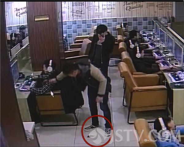 通过监控,民警发现,一名嫌疑人把钥匙放在地上,然后拍拍上网的人,问钥匙是不是他的,同时引导对方看钥匙。而这时,另一名嫌疑人就把该上网者桌上的手机拿走了。