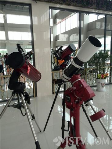 走进位于如皋斯密特森光电科技公司,犹如走进天文望远镜的王国:长的、短的、大的、小的,各种各样,记者首先寻找那架在国际空间站工作的望远镜,公司产品开发部高级副总裁李思伟告诉记者:那架望远镜还在太空站“服役”,不过,它的同型产品“星特朗CPC9.25”就有一架陈列在展厅里,因为价格昂贵,只能供人“仰望”。抬头望去,它有粗壮的黑色的三脚架,黑色的大口径,十分霸气,2009年10月8日奥巴马总统在白宫举行的观星会,用的也是这家公司生产的这款“星特朗CPC9.25”,这款产品最大的有点就是广角,高倍率,完全全自动,带马达,所以拍的图片很清晰。