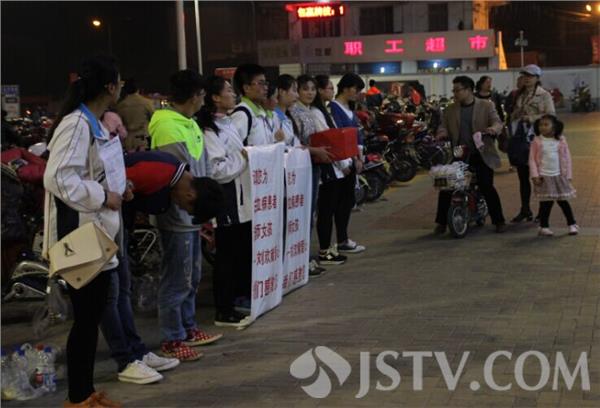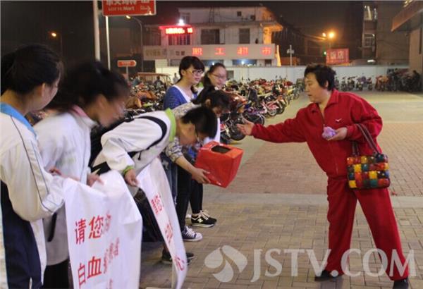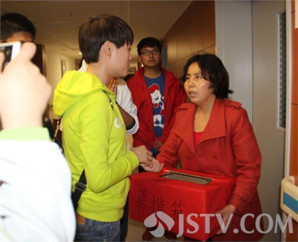 4月24日下午2点,淮阴师范学院大学生们走上街头募捐,也有同学在校园里募捐,记者在淮安市淮阴区淮海北路乐天玛特超市门前,大学生们抱着捐款箱为刘欢同学进行爱心募捐,见到有路人和购物市民经过,大学生们纷纷鞠躬来引起广大市民的注意。