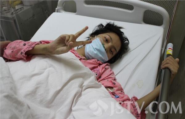在淮安市第一人民医院内科大楼6楼血液科重症室6床看到,病床上的刘欢脸色非常枯黄,由于体虚妈妈不停给女儿喂营养水,通过和刘欢的短暂采访,刘欢希望通过记者的镜头想对帮助过自己的老师同学们和社会好心人说声谢谢。
