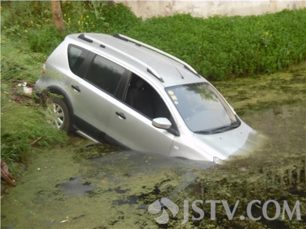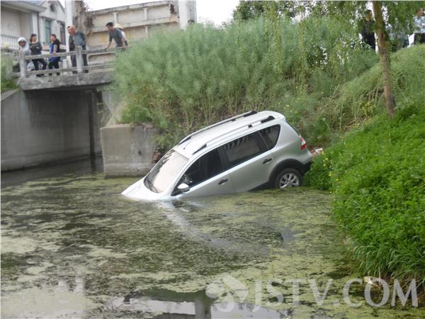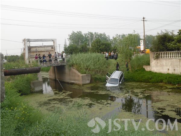 笔者接到爆料后第一时间赶到位于圩口闸旁边的事故现场,只见一辆银灰色小轿车头朝下尾朝上钻在水里,车辆驾驶室差点被水淹到,公路旁边的油菜地里的油菜被齐刷刷地压到,旁边的水泥路上留下了车辆划过的白色痕迹,现场围满了看热闹的老百姓。