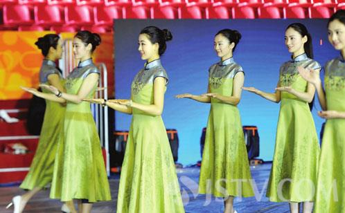 本次世乒赛的奖牌上刻有苏州的地标性建筑--虎丘塔和东方之门,还有苏州评弹使用的琵琶以及鱼米之乡等具有代表性的苏式风物。而礼仪小姐的礼仪颁奖服饰采用了产自苏城的宋锦面料,设计上也颇有讲究。服装以水波蓝和翡翠绿为主色调,衣服的前襟和后背上面的图案是凤凰牡丹,牡丹意味着富贵,双凤朝阳意味着吉祥如意。衣服的裙摆上面,是印上了苏州市市花桂花的图案。