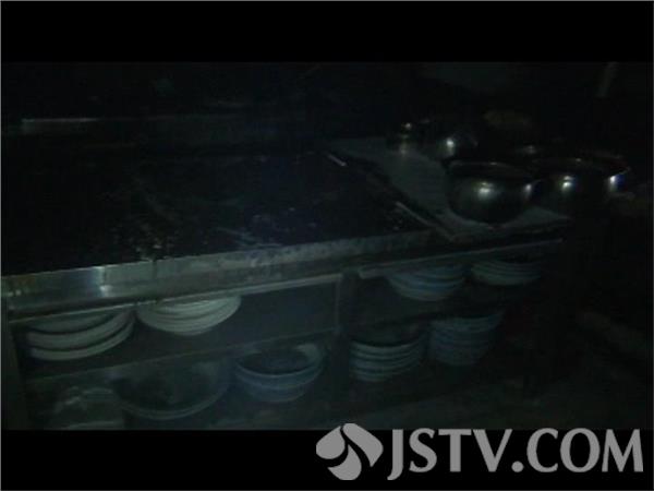 消防队员到达现场时从饭店外面并没有发现有浓烟冒出,进入饭店2层,一股刺鼻的味道迎面而来,浓烟也从厨房处一直冒出,消防队员利用室内消火栓出一只水枪通过厨房传菜口对着火点进行打击火势。