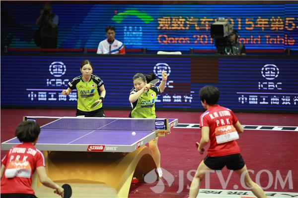 在今晚女双第二轮比赛中,日本选手福原爱搭档若宫三纱子对阵朝鲜选手李美英和李明顺。瓷娃娃一现身赛场,现场观众高呼福原爱,人气爆棚。最终日本组合以4比1战胜朝鲜双李组合。