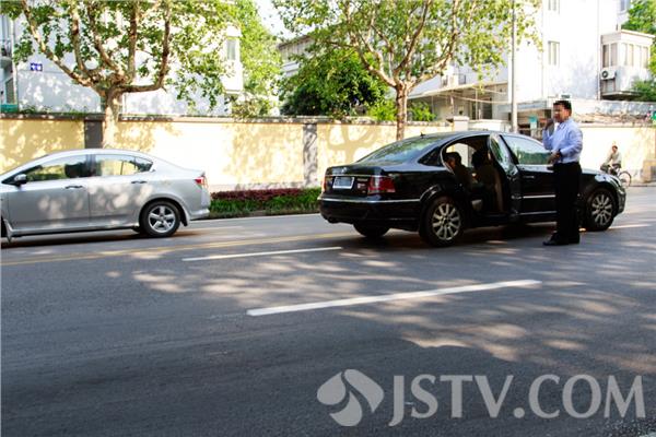 笔者在现场看到,帕萨特轿车由北向南停在超车道上,穿白色上衣的司机下车正在车旁打电话,受伤老人已坐在黑色轿车后排座内,受伤不是很严重,但老人一直在看自己脚,笔者怀疑可能脚部受伤。