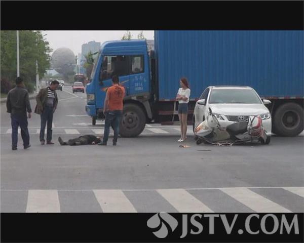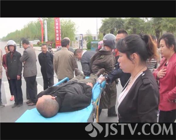 记者在现场看到,一名五十多岁的男子仰面躺在由东向西的机动车道里,嘴里和鼻子里有鲜血流出,地面上有一滩血迹,一辆白色轿车头朝西停在由东向西的车道里,一辆电瓶车车头朝北卡在轿车的前保险杠下面,电瓶车上携带的物品散落一地。白色轿车的驾驶员告诉记者,电瓶车是闯红灯过来的,而与其并排行驶的另一辆轿车又遮挡了他的视线,等他发现电瓶车时已没有办法采取避让措施了。120救护车赶到现场后,急救医生迅速进行了初步检查,同时在围观市民帮助下,将伤者抬上救护车送医院检查治疗。