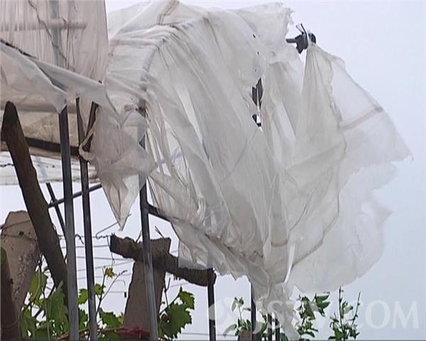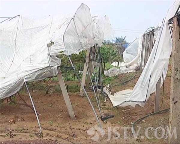 在句容白兔镇,记者看到:不少种植户的大棚钢架不同程度弯曲损坏,塑料薄膜也被吹飞,棚内的葡萄树也遭到了一定程度的损伤。葡萄种植户陈平华告诉记者,他家20多亩的葡萄大棚在这场灾害中已经损失大半,昨晚(28日)一开始是起大风,大风又下雨,还下大冰雹,大的有小孩手那么大,小的还有一块钱人民币那么大,一般都有鸡蛋那么大,没办法了,人吃不消了就躲回家去,眼睁睁的看着给它毁的了。