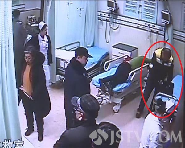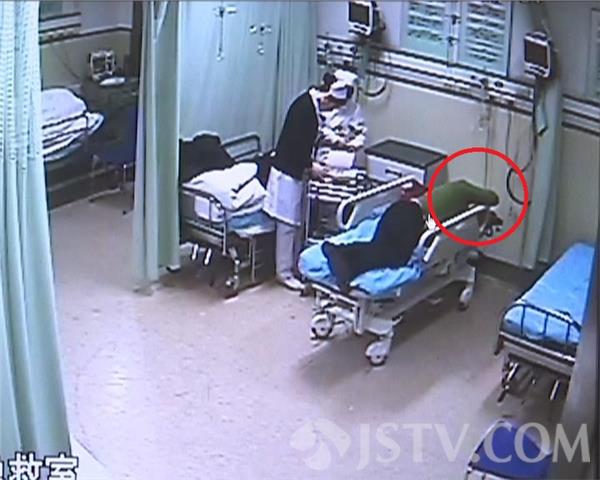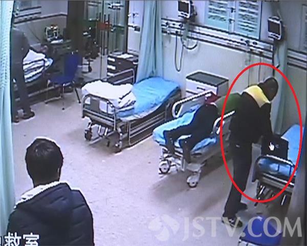 监控显示,期间嫌疑人曾两次打开受害人的包,并在手包内拿出手机,接了两次受害人家属打来电话,并冒称自己是警察,让其家属到医院来一下。随后,趁其他人不注意的时候,将受害人的包偷走。