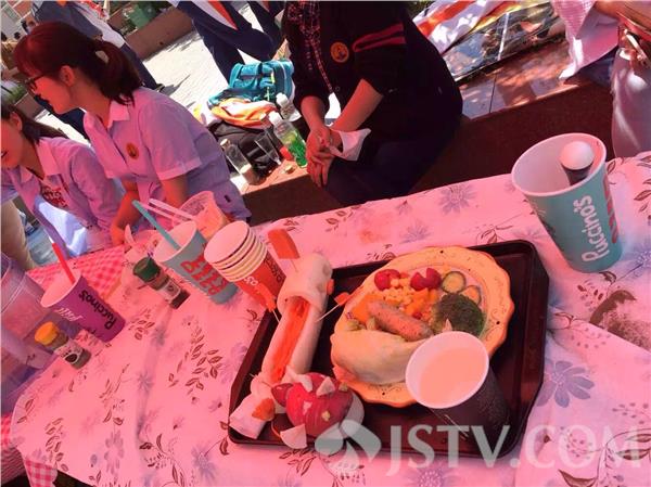 鸡蛋葱油薄饼、红烧狮子头、宫爆鸡丁、可乐鸡翅、炸猪排、韩式炒年糕、日本寿司、扬州炒饭、水饺……光是看到这些菜肴,一般人绝对想象不到,这些“大餐”,竟然都出自高中学生之手,尤其是部分即将参加高考的高三学生,也会有这份“闲情逸致”参与。美食节的高潮充分体现在美食义卖活动环节,从创意广告宣传到食品销售一条龙服务,学生热情高涨,爱意浓浓。据了解,南外仙林分校每周都设有“Cooking”课,校方就是希望通过学习和实践,让学生掌握烹饪技术和基本生活能力。