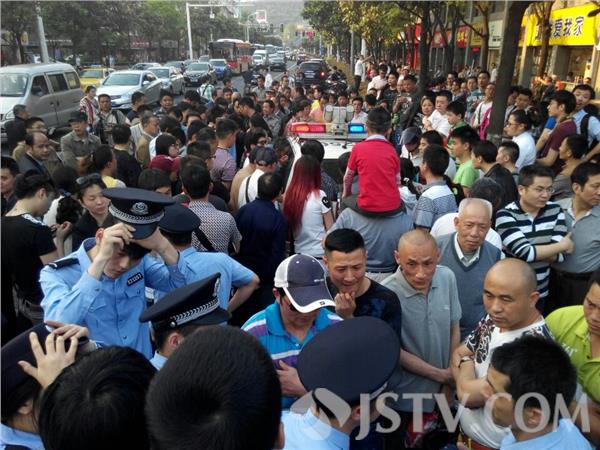 当笔者经过现场时,发现南京后宰门北安门街围着近百人,警车被团团围住,警车上一“奥迪女”坐在后座,不停地玩手机。据了解,当日下午“奥迪女”排队买奶茶,此时,一位抱小孩的女子来买奶茶,奶茶店服务员讲:要排队,抱小孩的女子问了一句,有没有不要排队的奶茶,随后奶茶店服务员拿了一杯包装好的,给抱小孩的女子。