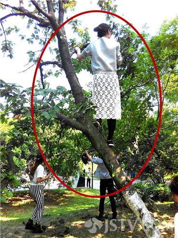 作为免费开放的公益性公园,风景优美的玄武湖公园内每天游人如织。然而令人遗憾的是,挂满枝头红彤彤的樱桃却被人采摘走了。有的不注意形象,竟然爬上树梢随意采摘樱桃,并干脆连枝带叶把樱桃枝“折枝”,大煞风景。