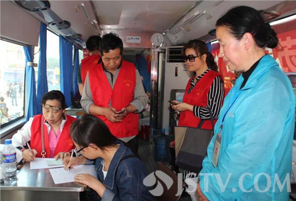 走上献血车看到,志愿者们早早的就赶到了,志愿者们在献血车工作人员的指引下填写献血相关表格,当填写完毕后,志愿者们进行了验血型,测血压等程序,所有环节都结束后便开始抽血。志愿者们不仅献血,还在献血车上为献血的市民提供志愿服务。