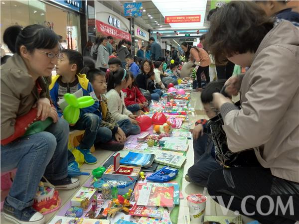 5月2日下午,盐城儿童跳蚤市场在市区建军路地下商业街开市,数百名儿童在家长陪同下出售自己的书籍、文具、玩具以及生活用品,或者以物换物。