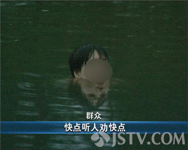 记者在现场见到,女子已被水流推到了河中央,不少围观的群众都在岸边劝说女子上岸。