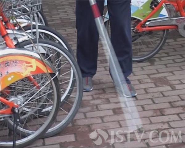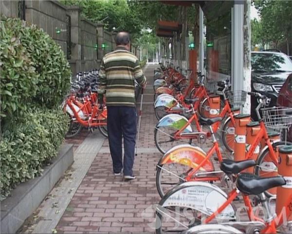 昨天,南京的视障人士李先生向我们热线反映,建邺区螺丝桥大街的盲道上突然多出来一排公共自行车,这让他们出行很不方便。