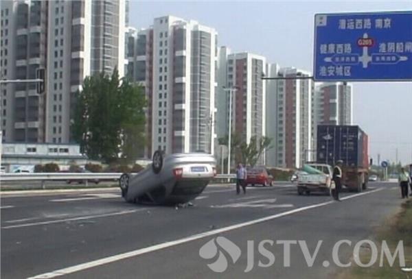 5月3日下午14:50分左右,淮安市清河区G205公路与淮海西路十字路口,一辆银灰色轿车撞向前方等红绿灯的科鲁兹轿车,在猛烈撞击后斯柯达轿车侧翻在公路中间,幸好车上无人受伤。