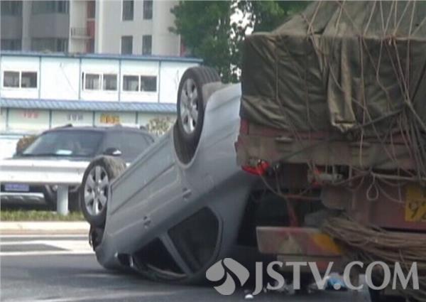 现场看到G205公路上一辆轿车车头由东向西横向侧翻在路中间占据了四股车道中的两股,由于通往前方十字路口的两股直行车道被占,许多车辆不得不改道行驶,撞车侧翻的是一辆大众斯柯达轿车,由于轿车内驾乘人员系上安全带没有大碍先行爬出车外,但是轿车车内一片狼藉,轿车由于在地上翻滚车身上破损较多。