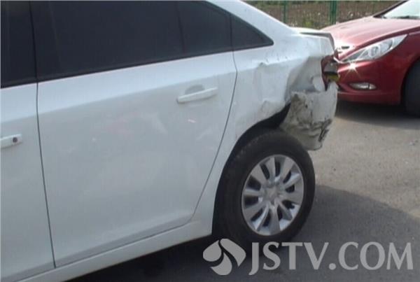 而被撞白色科鲁兹轿车左后车轮变形严重,尾部破损严重,事发时避让及时没有造成车内人员受伤。